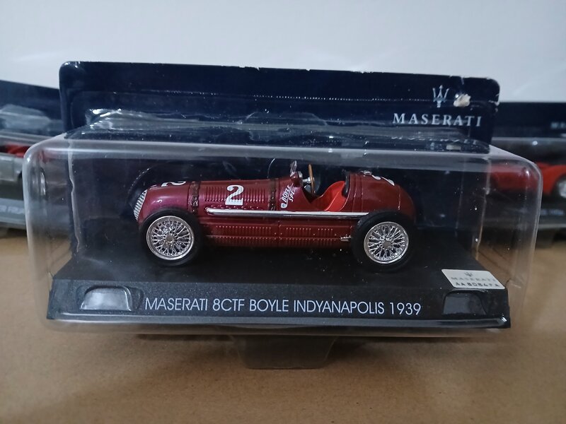 Modellino auto Maserati 8CTF Boyle Indyanapolis 1939 Official Licensed Product in metallo scala 1:43 da collezione L'articolo e la confezione possono presentare segni, imperfezioni, scollature, ingiallimento e lati schiacciati dovuti all'età dell'articolo
