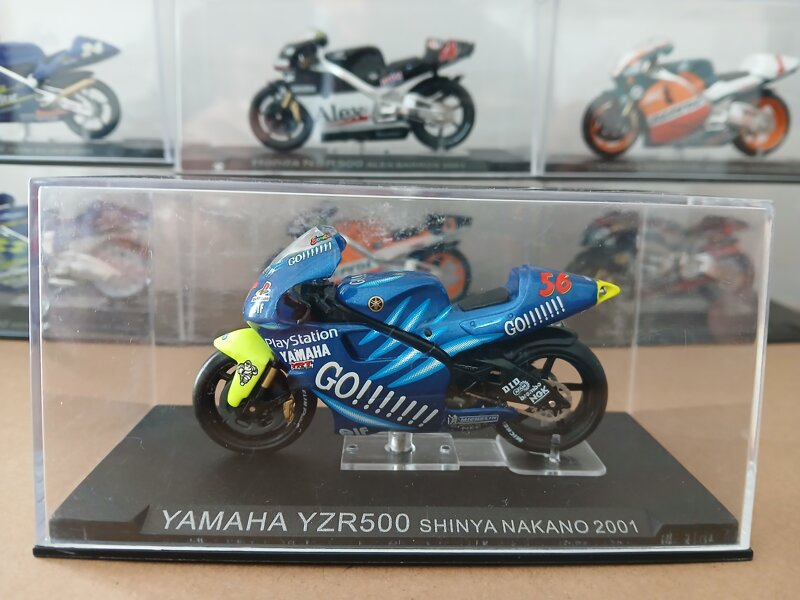 Modellino moto Yamaha YZR500 Shinya Nakano 2001 scala 1/24 da collezione Grandi Moto Da Competizione DeAgostini con teca